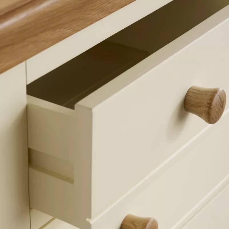 Tủ ngăn kéo 3+4 Country Cottage có kiểu dáng tuyệt đẹp và cân đối, với các góc loe thanh lịch và hai tông màu tương phản, bắt mắt. Sản phẩm được chế tác một cách chuyên nghiệp, từ chất liệu gỗ sồi trắng Mỹ chất lượng cao. Thiết kế bảy ngăn kéo đáp ứng nhu cầu lưu trữ phong phú cho phòng ngủ. Để đáp ứng các yêu cầu về tiêu chuẩn chất lượng khắt khe của chúng tôi, các sản phẩm đều được thực hiện bằng phương pháp ghép mộng, nối khớp truyền thống. Đây cũng là chế tác thuộc bộ sưu tập Country Cottage hiện đại, góp phần mang lại vẻ đẹp thanh lịch và sang trọng cho không gian nội thất của mọi gia đình.