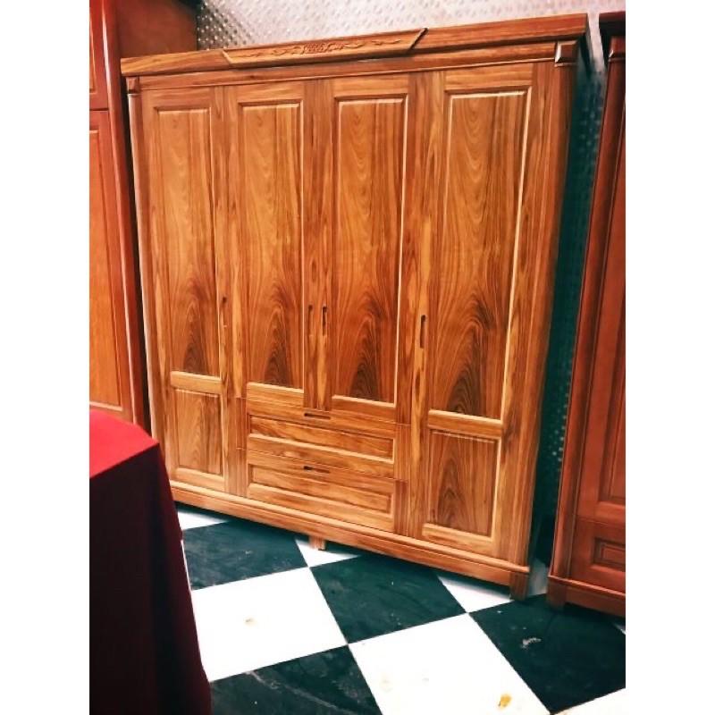Tủ Quần Áo Gỗ Hương Đá 4 Cánh Kèm Kệ Trang Trí Cao Cấp | Đồ Gỗ Cường Nga