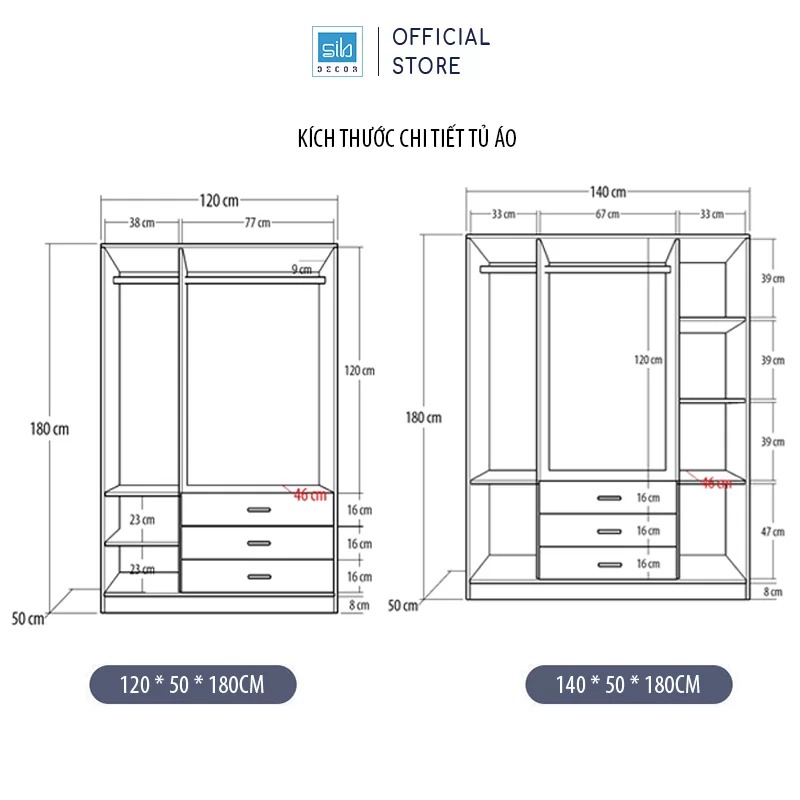 Bề sâu của tủ lên đến 50cm cho bạn không gian lưu trữ rộng rãi, tránh bị gò bó khi treo đồ đạc, lưu giữ phụ kiện.