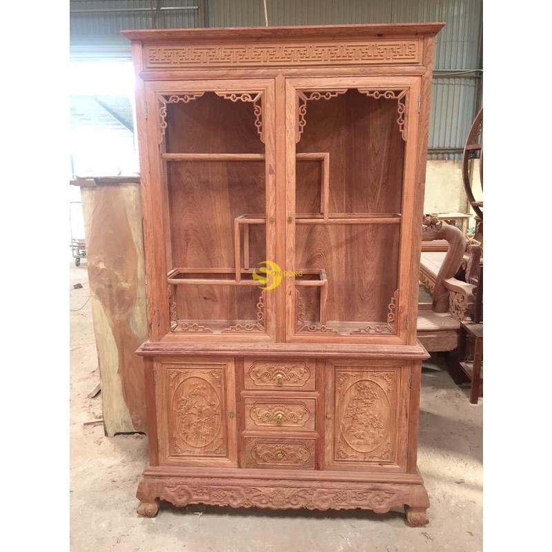 Tủ Rượu Trang Trí 1m2 Gỗ Hương Đá Đục Tay Kênh Bong Vip Nhất