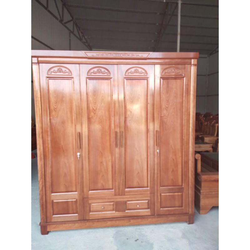 Hai mẫu tủ quần áo 3 buồng 4 cánh gỗ hương xám và xoan đào.