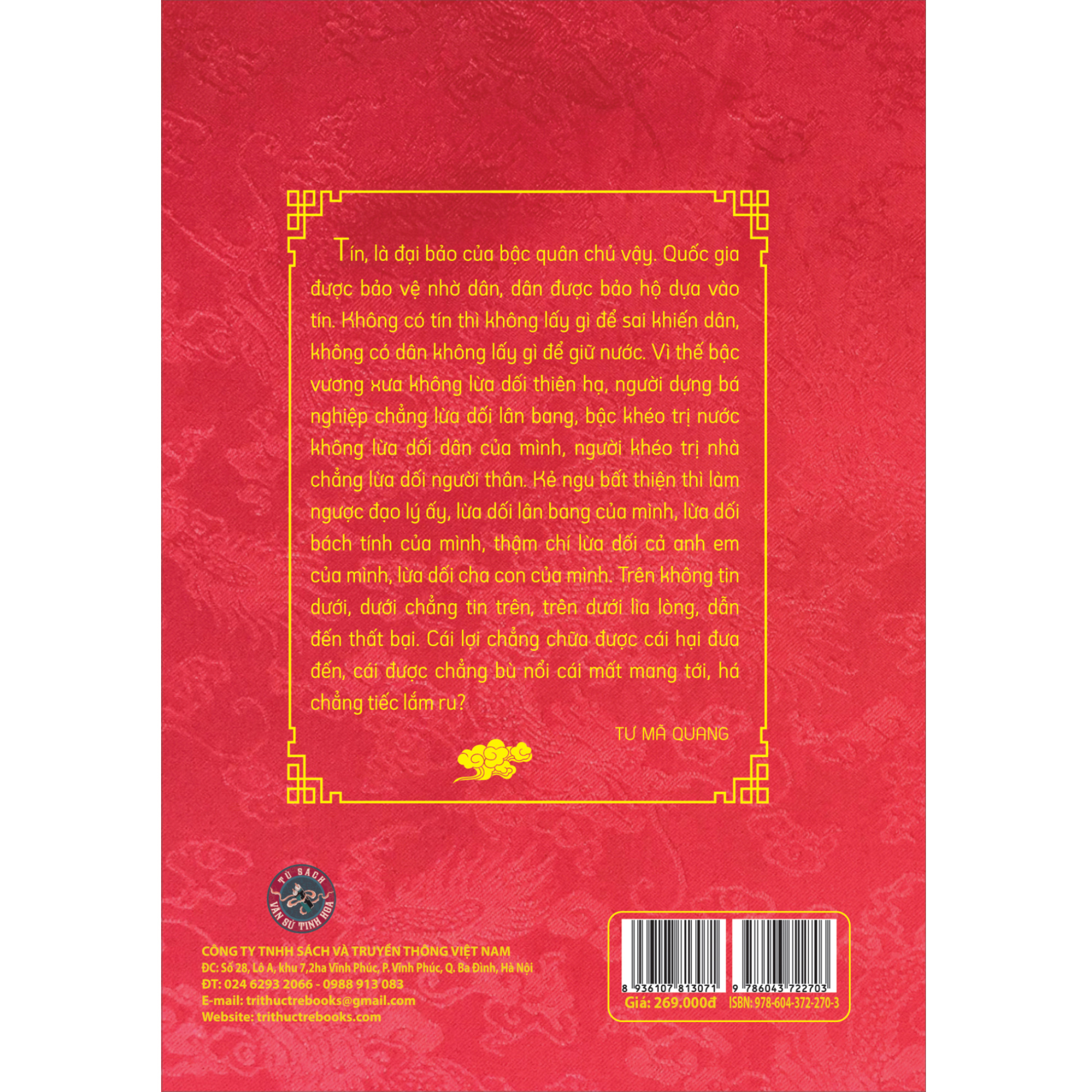 Bên cạnh đó, bộ sách còn được đầu tư, chăm chút công phu, kỹ càng từ chất lượng dịch thuật, hiệu đính, biên tập đến trình bày, chất liệu giấy, bìa sá để Tư Trị Thông Giám xứng đáng là bộ sách có giá trị cần có mặt trong thư phòng của bạn.
