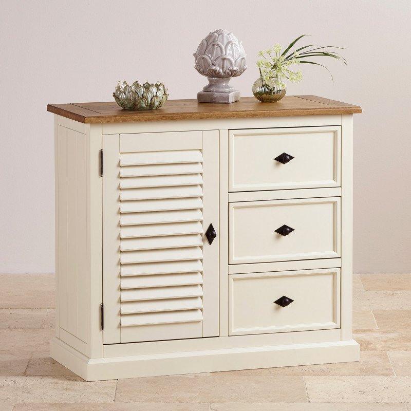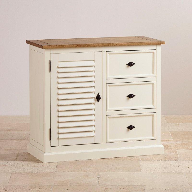 Tủ trữ đồ Shutter là một phần lý tưởng để bổ sung cho nhu cầu lưu trữ đa dạng của bất kỳ căn phòng nào trong nhà. Sản phẩm là sự kết hợp hài hòa của màu sơn trắng kem với màu gỗ sồi tự nhiên ấm áp, rất lý tưởng đặt trong không gian phòng ngủ hoặc phòng khách, phòng ăn… Với ba ngăn kéo và ngăn tủ giúp lưu trữ tất cả những đồ dùng trong phòng gọn gàng và ngăn nắp. Tủ được làm từ gỗ sồi trắng Mỹ nhập khẩu, đạt các tiêu chuẩn chất lượng cao của IBIE. Trong đó, ngăn kéo được chế tác thủ công, kết cấu ghép mộng chính xác. Các chi tiết thiết kế đặc trưng của bộ sưu tập Shutter được trau chuốt tỉ mỉ và tinh tế. Mặt hộc ngăn kéo có đường viền trang trí đẹp mắt, kết hợp nan gỗ trên cửa cánh góp phần mang lại vẻ thanh lịch và sang trọng cho tổng thể.