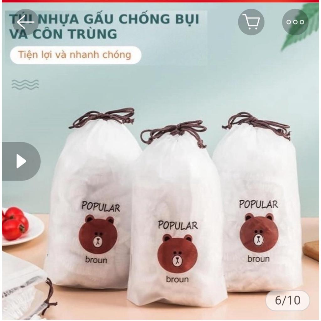 Túi Bọc Thực Phẩm 100 Chiếc Có Chun Co Dãn Tái Sử Dụng - Màng Bọc Thực Phẩm Hình Gấu