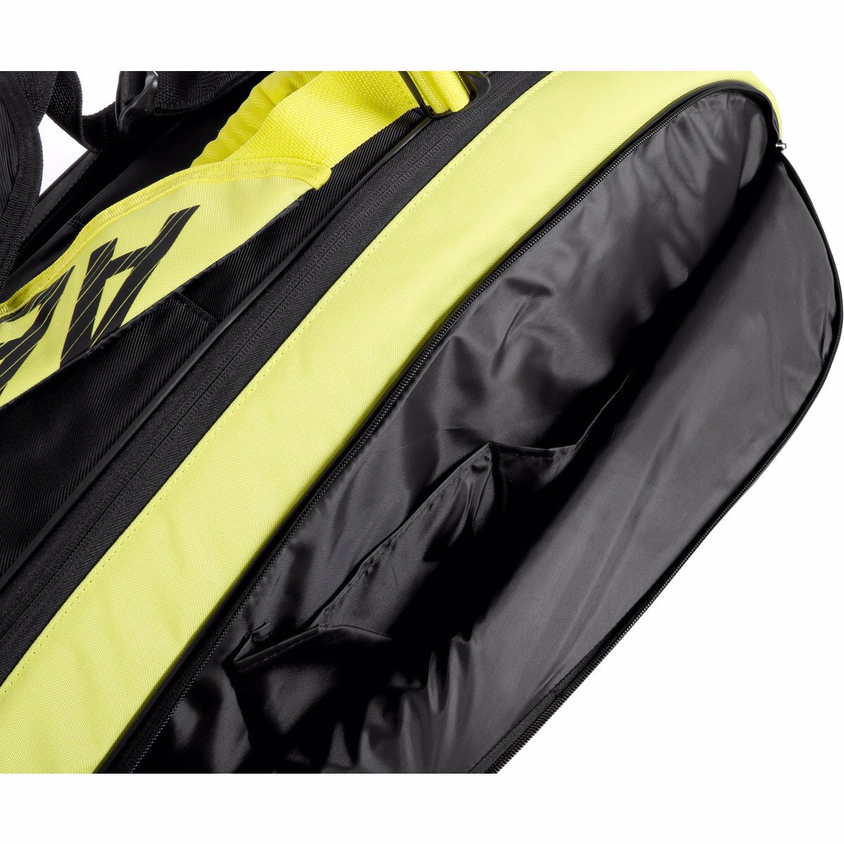 Túi BABOLAT PURE AERO 2021 , thiết kế mới với 1 mặt đen chữ vàng và một mặt vàng chữa đen, ngầu và nổi bật, theo tông dòng vợt Pure Aero mới nhất. Mẫu x6 pack