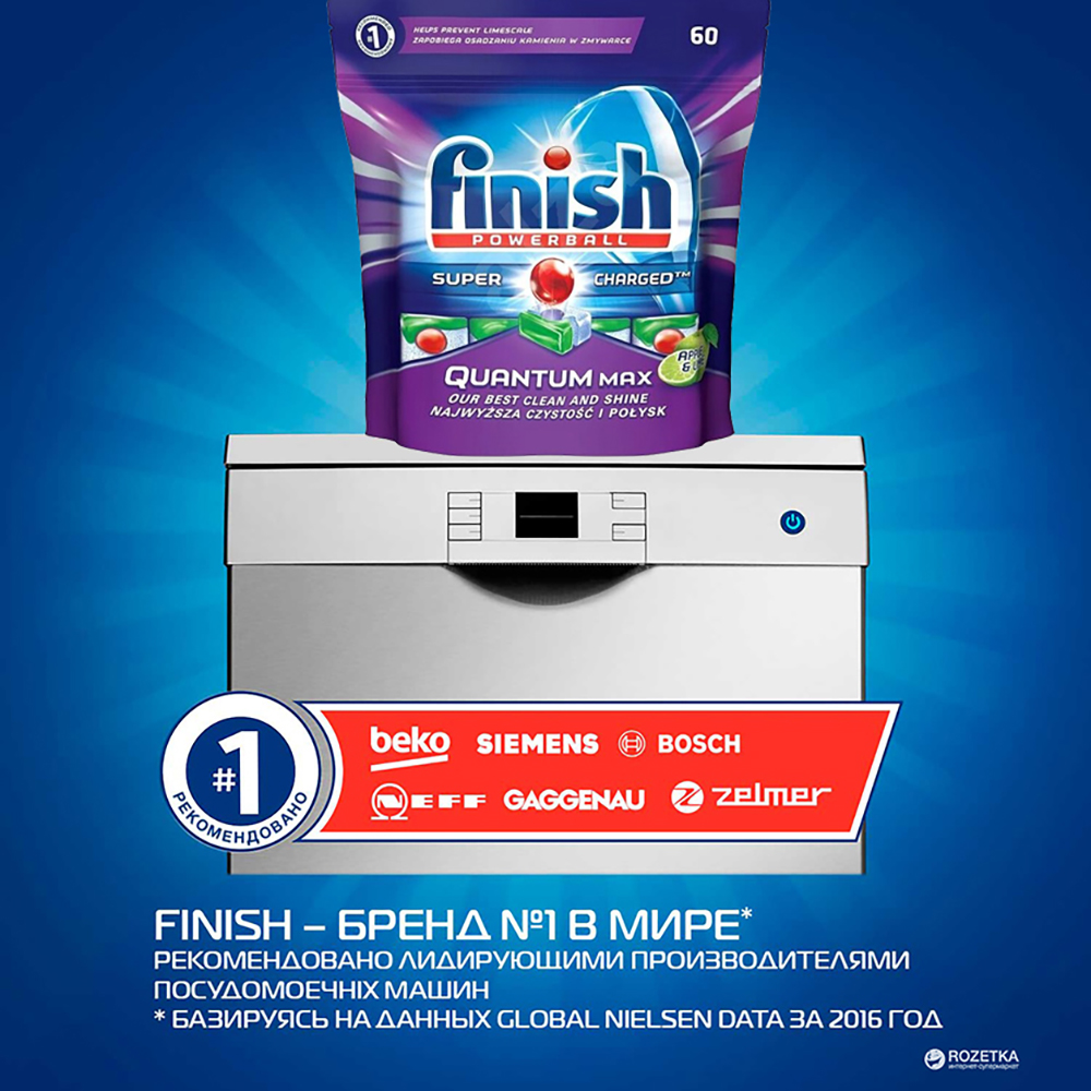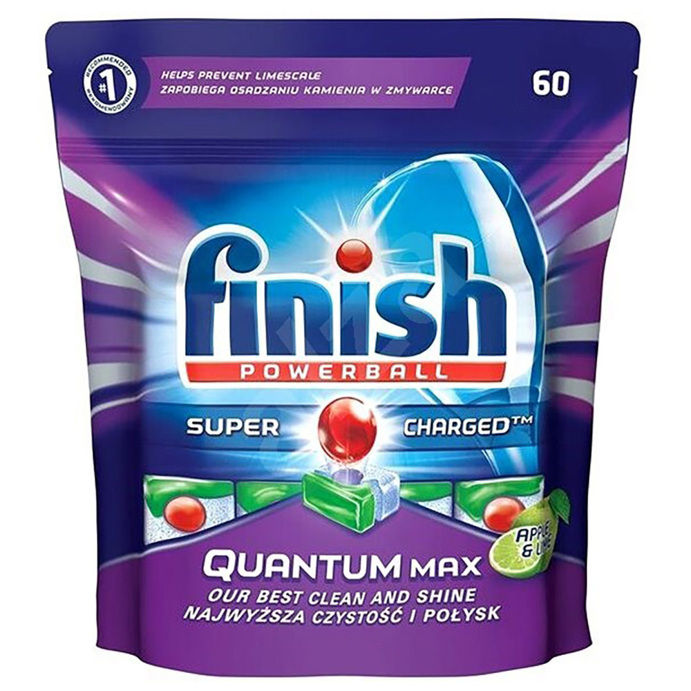 - Finish – thương hiệu rửa chén tự động được khuyên dùng bởi hầu hết các hãng máy rửa chén trên toàn thế giới. FINISH – EVERYDAY – EVERY LOVE Có thể bạn tin rằng mình đang sở hữu máy rửa chén tốt nhất với khả năng làm sạch một khối lượng chén đĩa khổng lồ, nhưng bạn không nhận ra rằng công suất hoạt động của nó đang giảm dần theo thời gian. Việc sử dụng chất rửa kém chất lượng cũng là một nguyên nhân chính dẫn đến chu trình rửa của máy bị gián đoạn, không hiệu quả, gây mùi hôi và làm giảm tuổi thọ của máy rửa chén. Viên rửa chén Finish Quantum Max Dishwasher Tablets Apple & Lime là sự kết hợp của công thức enzyme đặc biệt tiên tiến với các thành phần độc đáo và công nghệ Nano Protector cùng nhiều tính năng ưu việt, có sức mạnh tẩy sạch chất dầu mỡ và thức ăn thừa bám trên chén đĩa kèm theo khả năng diệt khuẩn, làm bóng chén đĩa, các đồ sành sứ, thủy tinh, inox và các dụng cụ nhà bếp và đem lại hương thơm tươi mát dài lâu.