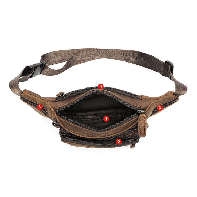 Túi Bao Tử, Túi Đeo Bụng Da Bò Marrant - BHM8879 với thiết kế nhiều ngăn khóa kéo: 3 ngăn kéo trước, 1 ngăn chính, 2 ngăn nhỏ bên sườn, 1 ngăn khóa kéo nhỏ phía sau túi giúp bạn thoải mái để phụ kiện cá nhân.