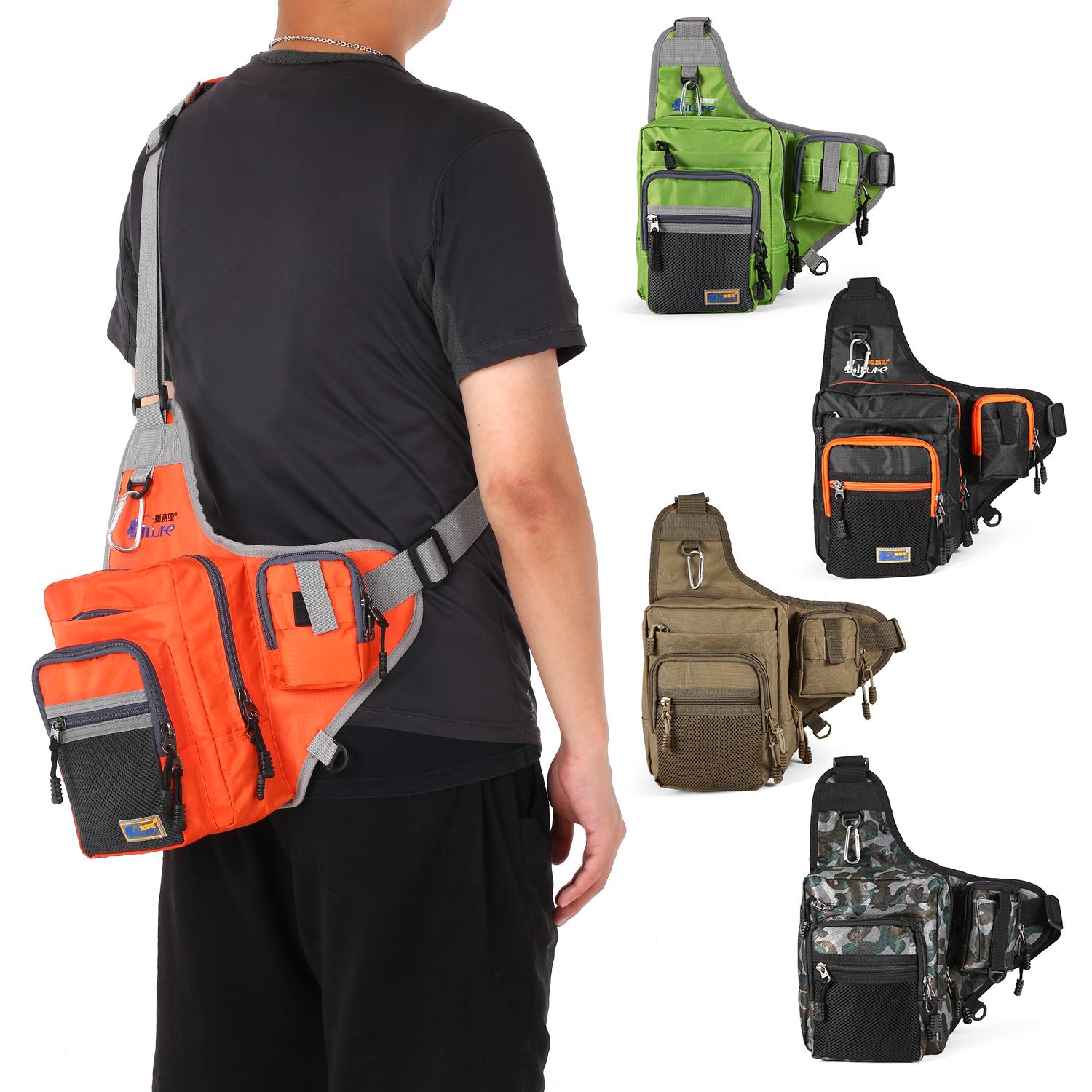 Features: Made of high quality chinlon and nylon material, water-resistant and wear-resistant. Durable PP fishing lure box with split interior space for convenient to storage baits. Adjustable shoulder strap with quick release buckle, convenient and
