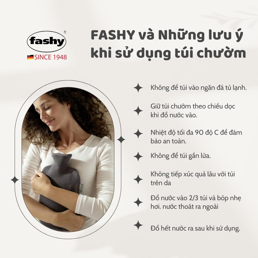- Túi chườm nóng thương hiệu Fashy – Đức được thiết kế với kiểu dáng thời trang, rất tiện dụng và an toàn khi sử dụng.