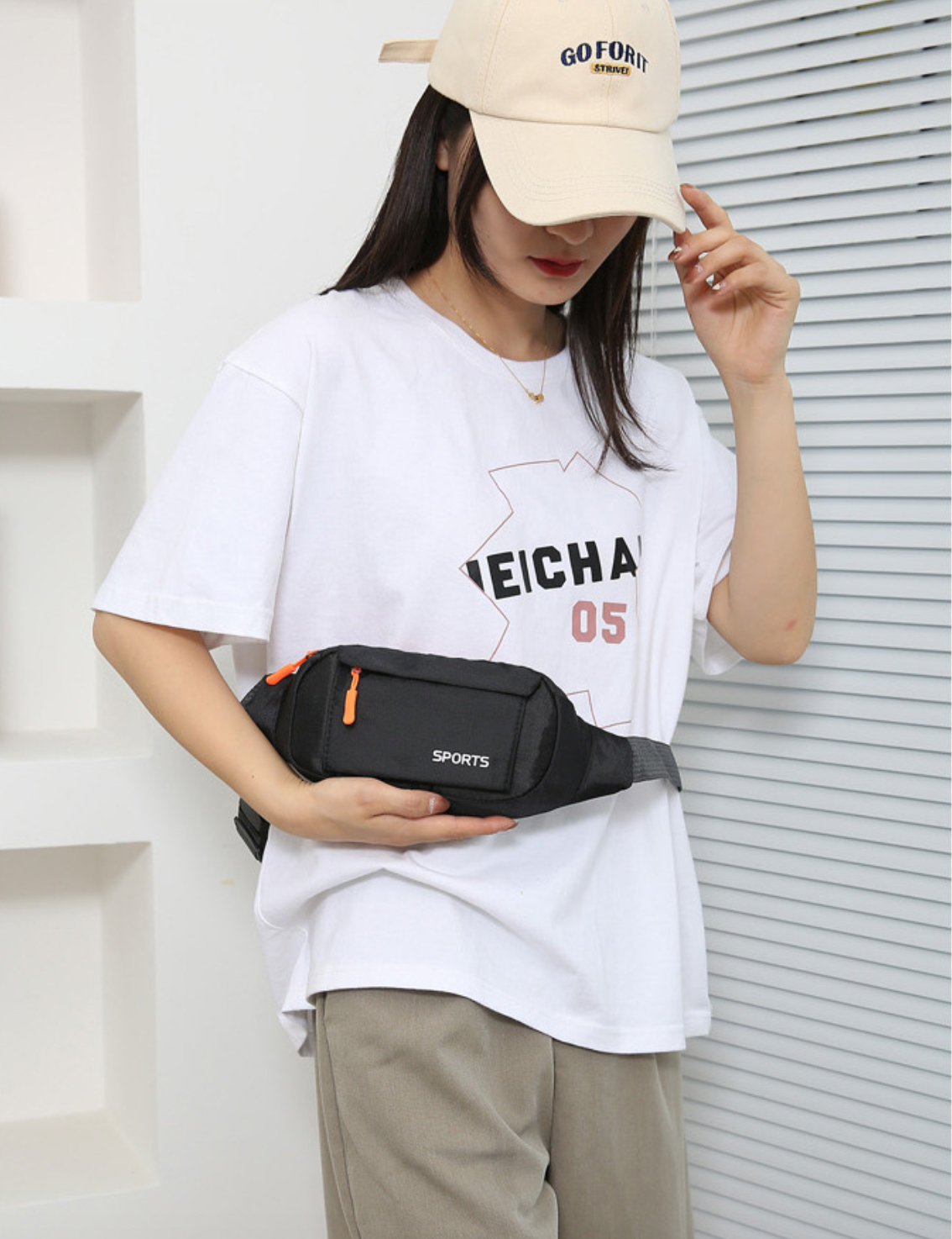 Túi Bao Tử Đeo Ngực Nhỏ Mini Trơn Màu Đen Giản Dị Dành Cho Nam Nữ Chất Liệu Nylon Chống Nước