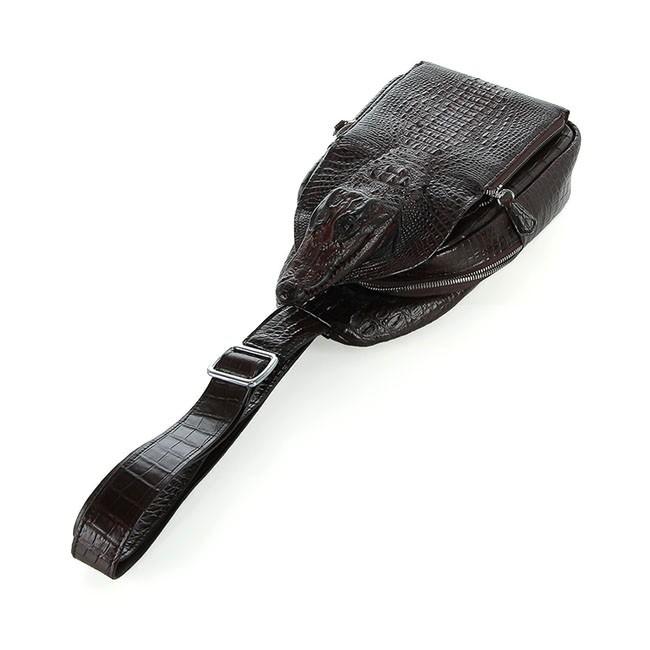 - Tên sản phẩm: Túi đeo trước nam da cá sấu Huy Hoàng đầu cá sấu màu nâu đất HP6290