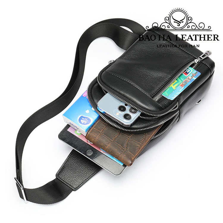 TÚI ĐEO TRƯỚC NGỰC NAM BHM7592 || DA BÒ THẬT || BAOHA LEATHER #tuideotruocnguc #tuideocheonam