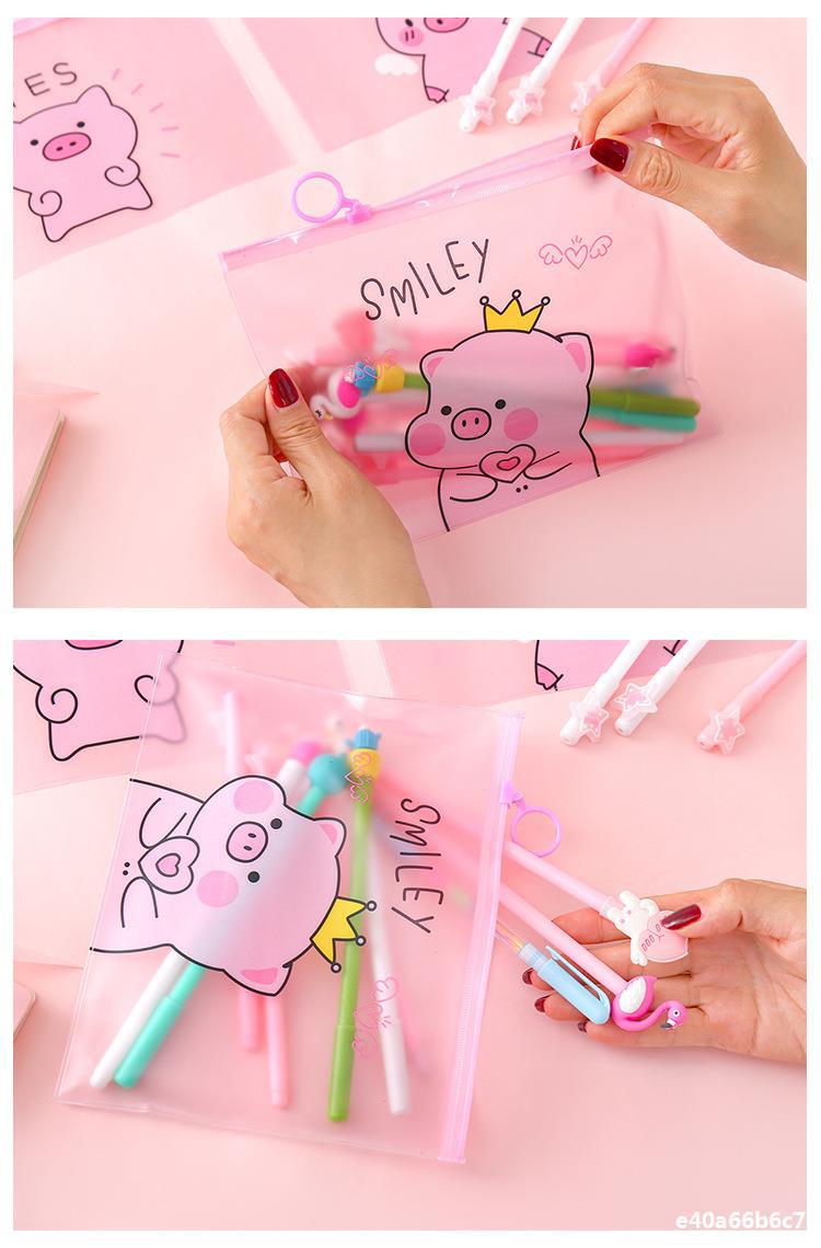 Hãy làm cho góc học tập hay bàn làm việc của bạn trở nên sinh động, dễ thương và gọn gàng hơn với Combo 2 túi đựng bút bóp viết có khóa zip heo hồng