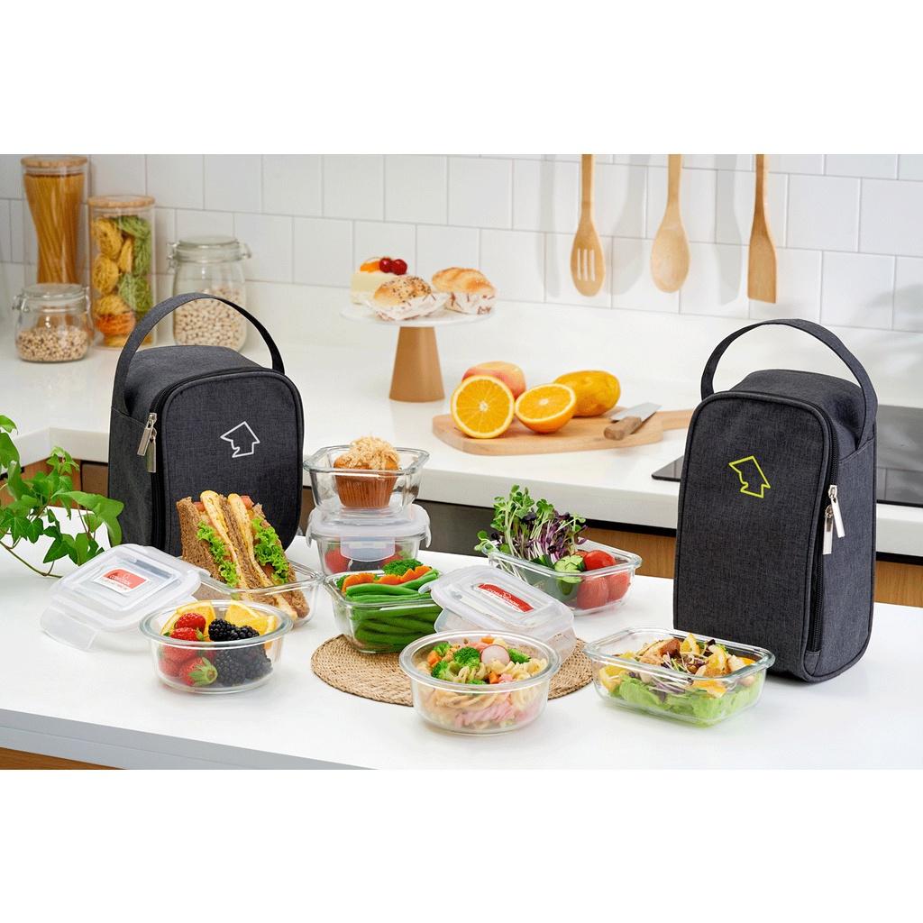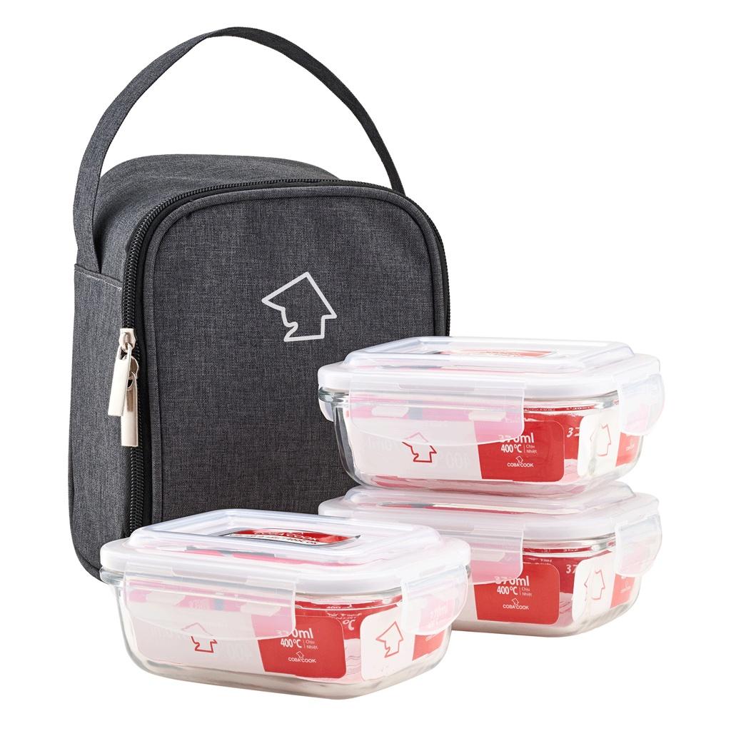 Bộ 3 hộp đựng cơm thủy tinh Lock&lock 430ml và túi giữ nhiệt Glasslock