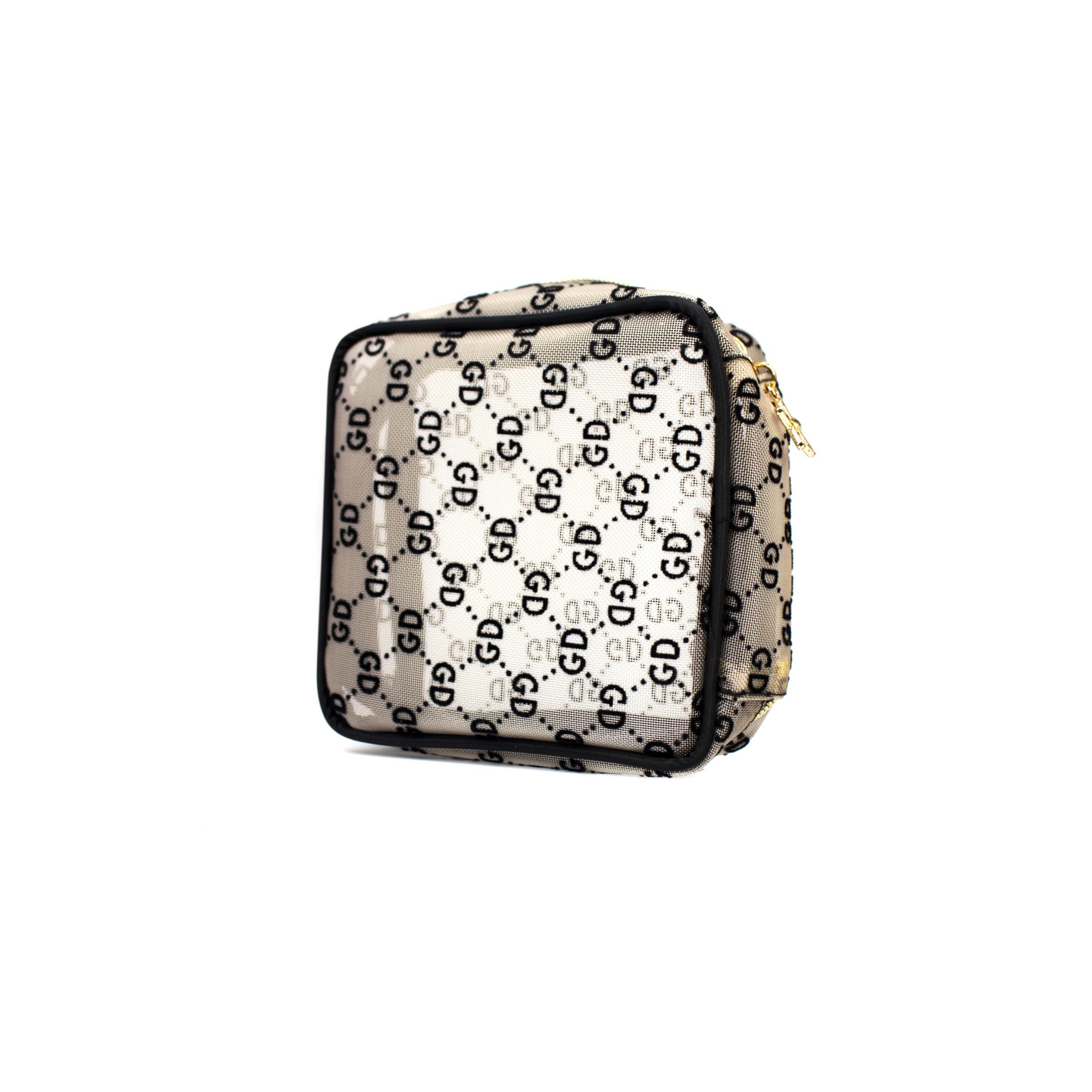 Kích thước: 18x9x12 cm Chất liệu: Nhựa nylon, khoá kéo kim loại Màu sắc: Màu kem họa tiết đen Số ngăn: 1 ngăn lớn Mô tả sản phẩm: Túi đựng mỹ phẩm cao cấp họa tiết hiện đại Care4u