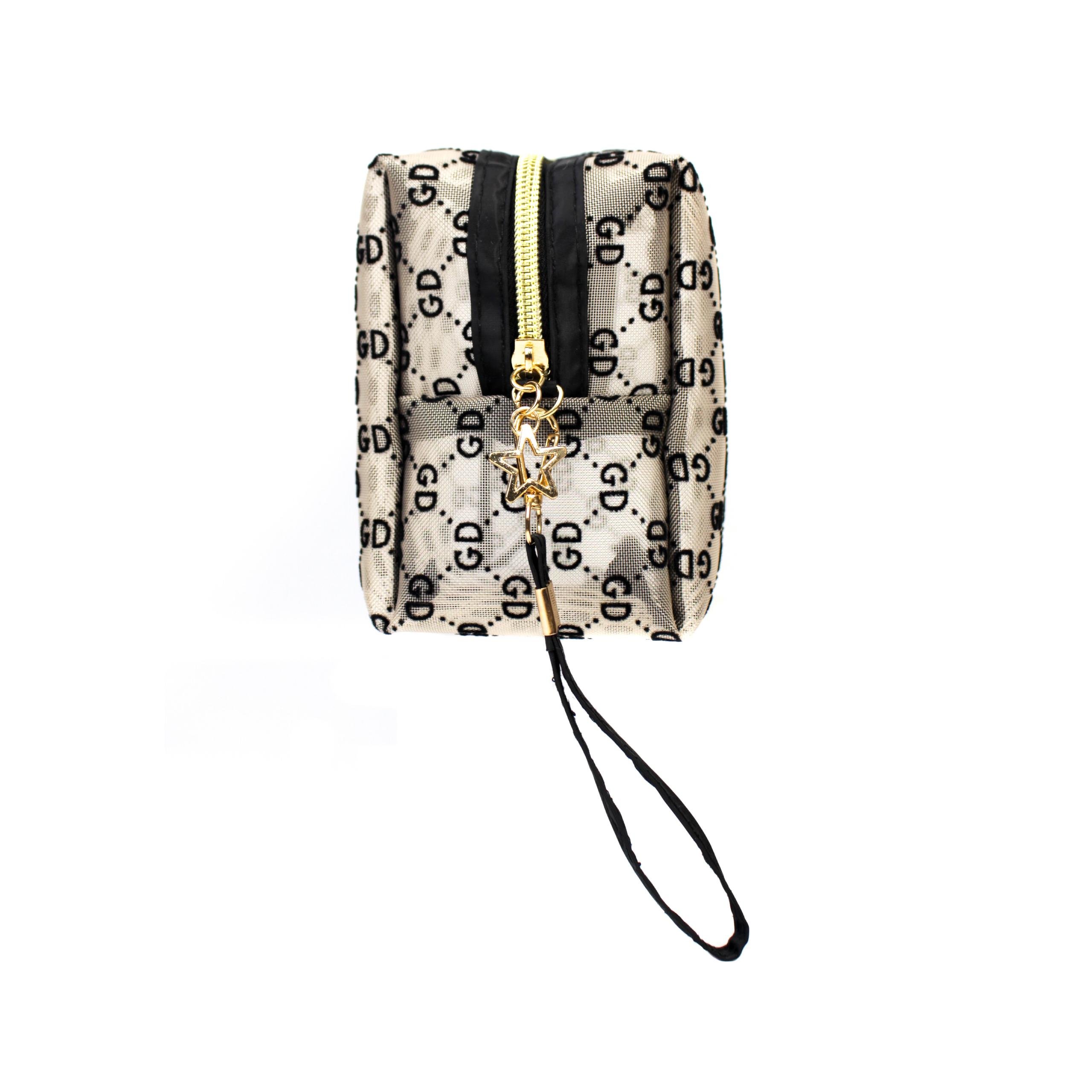 Kích thước: 21x12x13 cm Chất liệu: Nhựa nylon, khoá kéo kim loại Màu sắc: Màu kem họa tiết đen Số ngăn: 1 ngăn lớn Mô tả sản phẩm: Túi đựng mỹ phẩm cao cấp họa tiết hiện đại Care4u