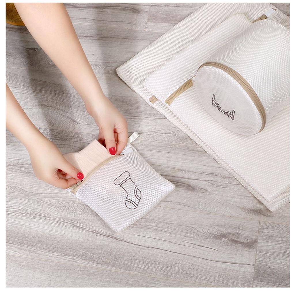 Túi lưới giặt quần áo đồ lót máy giặt có khóa 3 lớp hình thêu phân loại đồ giặt tiện lợi gia đình