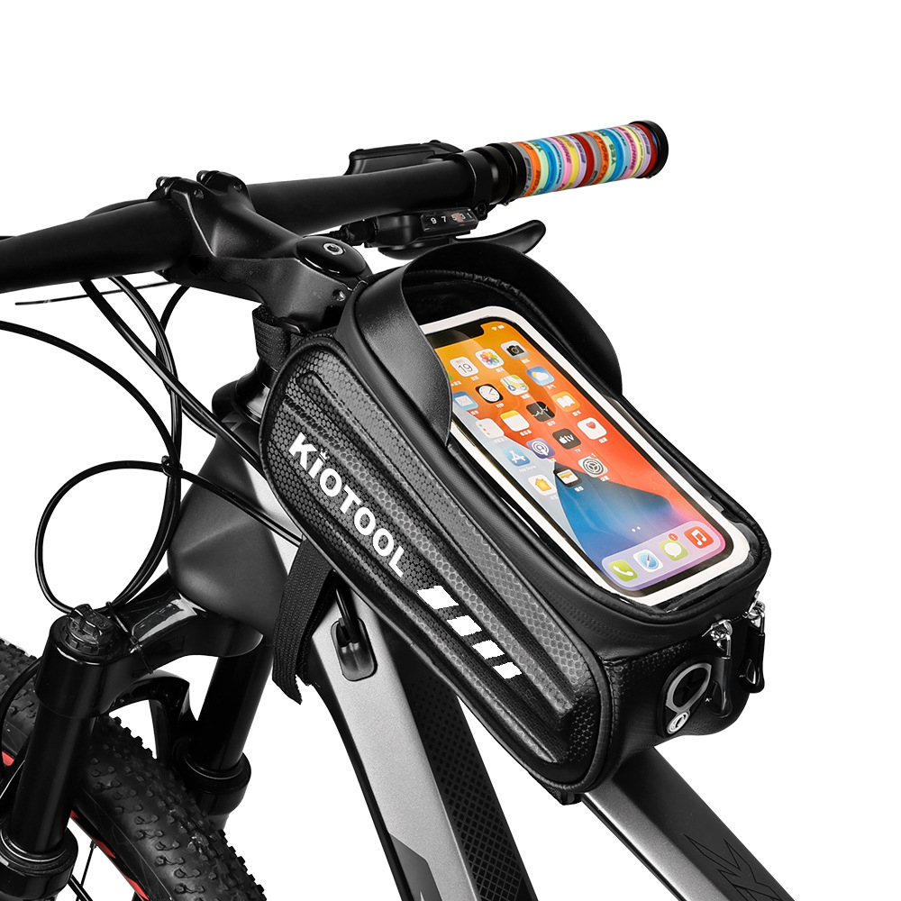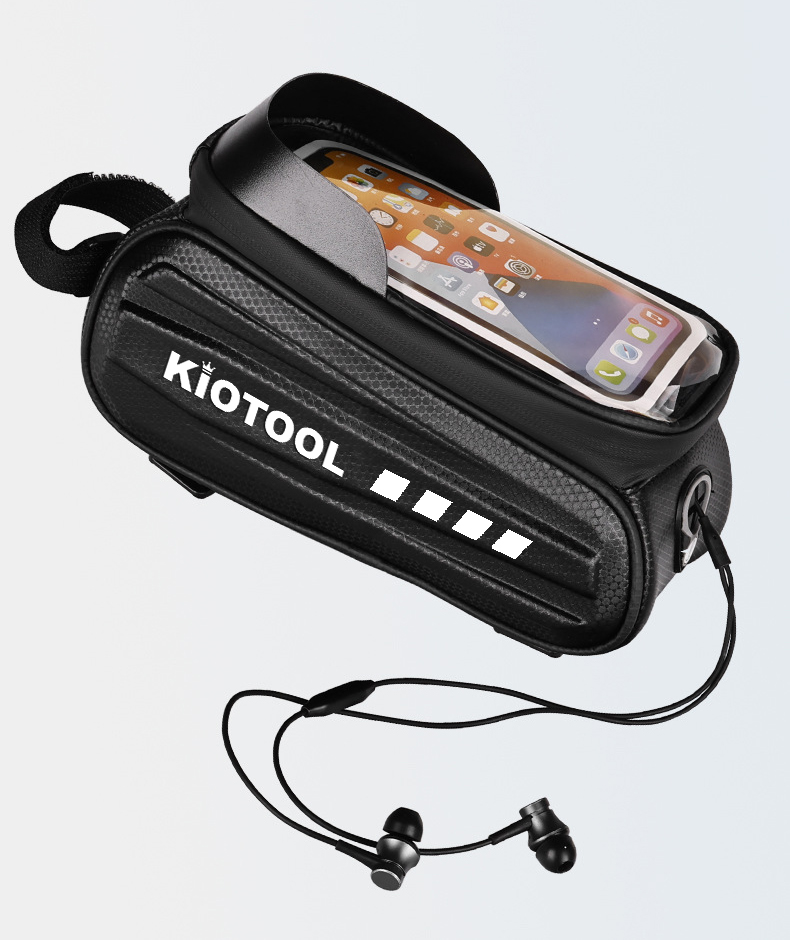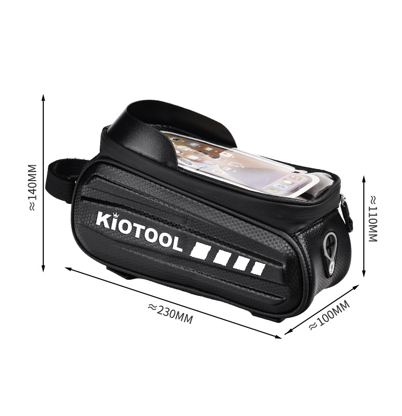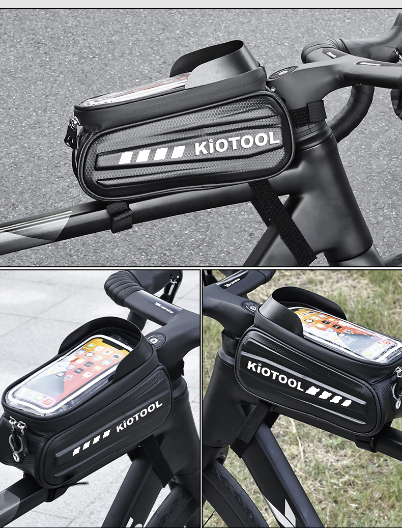 Túi treo sườn xe đạp vỏ cứng chống nước Kiotool đựng điện thoại Thương hiệu: Kiotool Tên sản phẩm: Túi treo sườn xe đạp Màu đen Trọng lượng: khoảng 170g Chất liệu: EVA + Polyester
