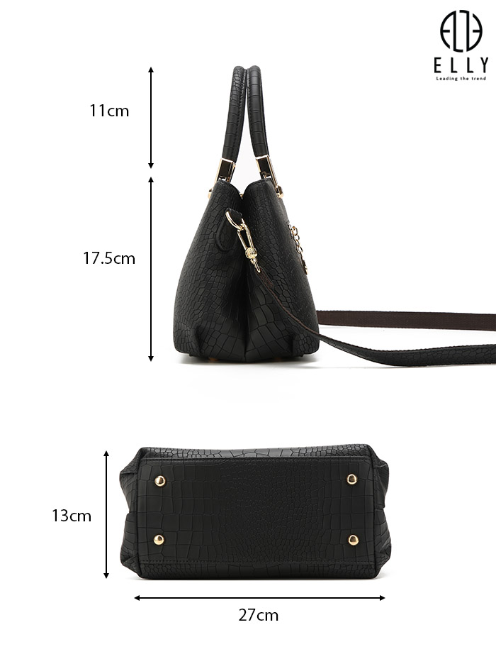 Mua tại Tiktok– Thương hiệu: ELLY. – Màu sắc: Đen. – Sản xuất: Trung Quốc (theo tiêu chuẩn chất lượng của thương hiệu ELLY). – Kích thước: 27 x 17.5 x 13 cm (chiều ngang x chiều dọc x độ dày). – Chất liệu: Da tổng hợp cao cấp nhập khẩu mềm mịn, độ bền cao, chống thấm nước và trầy xước với họa tiết vân cá sấu sang trọng, độc đáo. – Bảo hành: 03 tháng (với lỗi do sản xuất).
