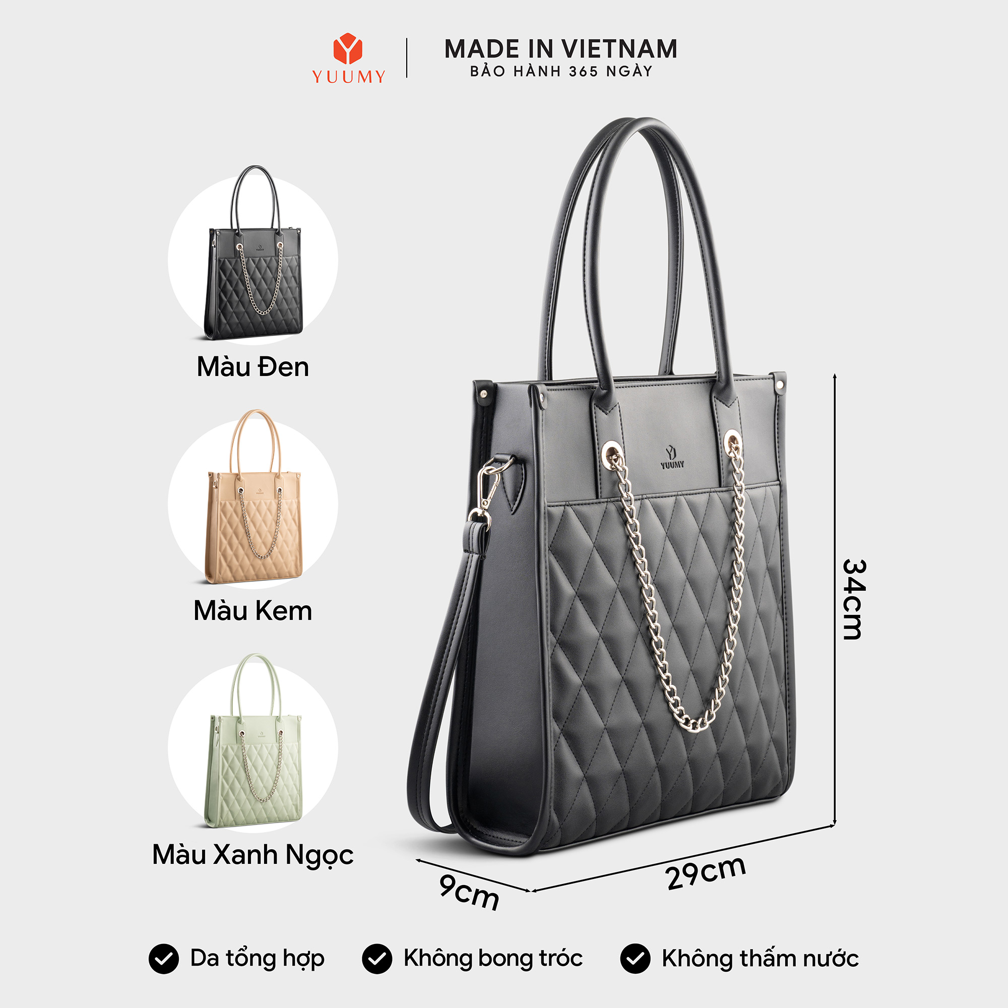 Mua tại TiktokTúi xách nữ thời trang Yuumy Seasand YTX63 là lựa chọn hoàn hảo dành cho những cô nàng yêu thích phong cách hiện đại pha chút thanh lịch. Thiết kế dáng đứng cứng cáp kết hợp cùng các đường may chần bông hình quả trám và điểm nhấn là dây xích kim loại tinh tế, chiếc túi mang đến cảm giác sang trọng, trẻ trung và cực kỳ sành điệu. Túi có sức chứa rộng rãi đựng vừa tài liệu A4 và các vật dụng cần thiết khác. Đi kèm dây đeo chéo, kết hợp dây đeo xích thời trang giúp bạn linh hoạt mang theo khi đi làm, đi học, dạo phố, cà phê hoặc dự họp.