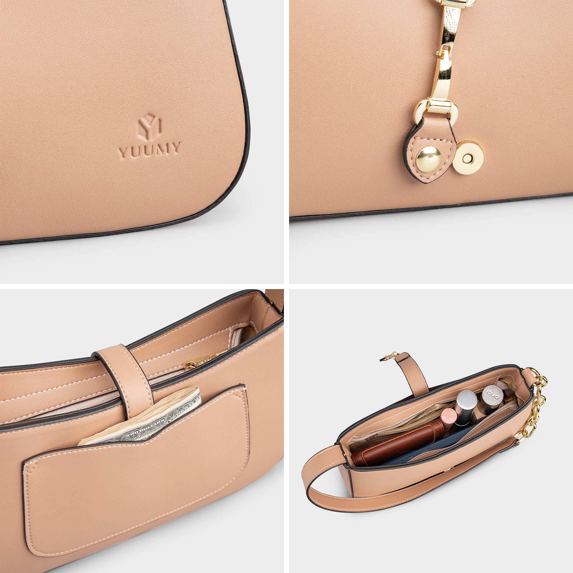 Túi xách vai Yuumy YTX76 với thiết kế dáng vòm mềm mại, form đứng vững vàng cùng gam màu dịu nhẹ, chiếc túi này dễ dàng đồng hành cùng bạn trong nhiều hoàn cảnh –