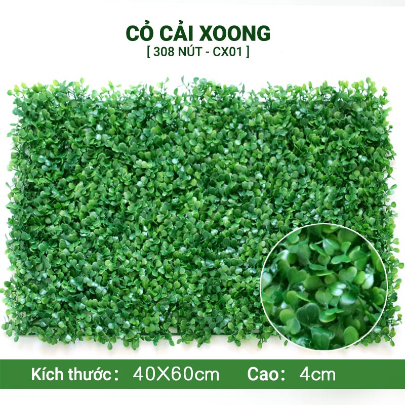 số lượng tấm cỏ = diện tích tường ( m² ) : 0.24 m²( diện tích 1 tấm cỏ 0.6 x0.4 = 0.24) .