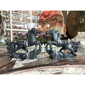 Chất liệu: Đá cẩm thạch vân đen Kích thước: Dài 20 cm x Rộng 5 cm x Cao 17 cm Khối lượng: 2,3 kg Ngựa được nhiều doanh nhân ưa chuộng. Bởi lẽ, trong phong