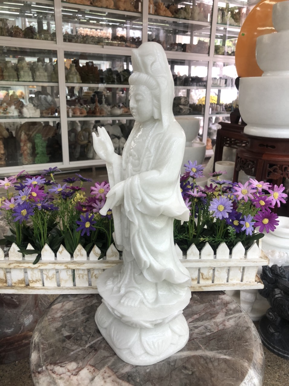 ✨Tượng Phật Bà Quan Thế Âm Bồ Tát đứng đài sen đá cẩm thạch trắng - Cao 40 cm
