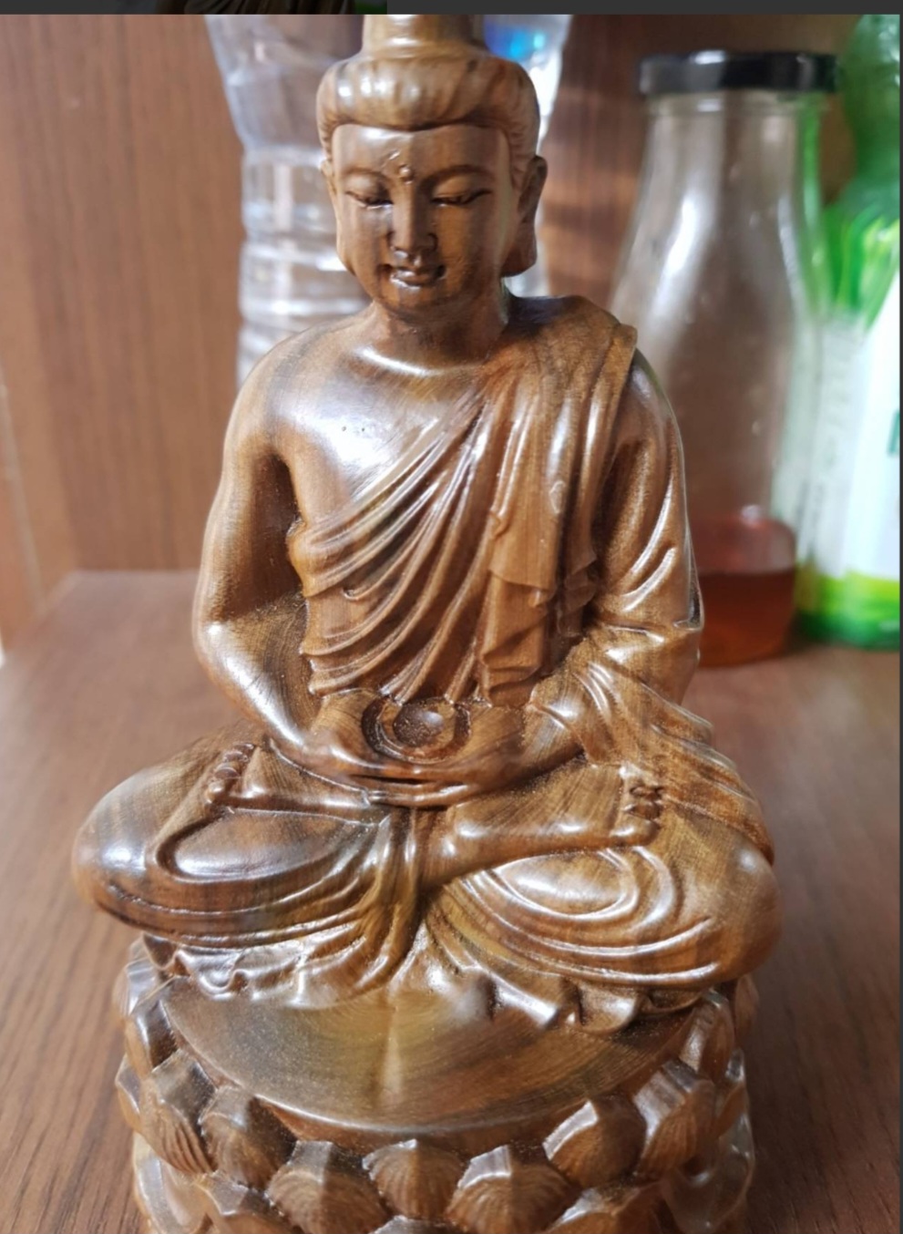 ✨Tượng phật bổn sư thích ca bằng gỗ bách xanh thơm phức kt cao 15×9cm