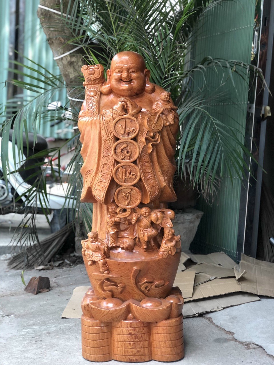 Mua tại TiktokTượng phật di lặc chúc phúc được làm bằng chất liệu gỗ hương đá tự nhiên 100% Kích thước cao 100×34×30cm _ Tượng phật di lặc ngũ phúc được trạm khắc tỉ mỉ tinh sảo kỳ công .Đi hầu hết mọi chi tiết góc ngách nội dung hoa văn của tượng đều được ngọt tỉa chỉnh sửa hoàn toàn bằng tay thủ công .Từ những người thợ dầy rặn kinh nghiệm cũng như tay nghề cao trong làng nghề truyền thống .Chính vì thế tượng phật di lặc chúc phúc đã đáp ứng đầy đủ những tiêu trí ( Đẹp bền rẻ ) Thẩm mỹ nghệ thuật với chất lượng tuyệt vời