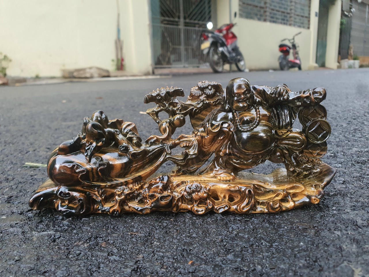 Tượng Phật Di Lặc kéo bao tài lộc gỗ Mun hoa Lào