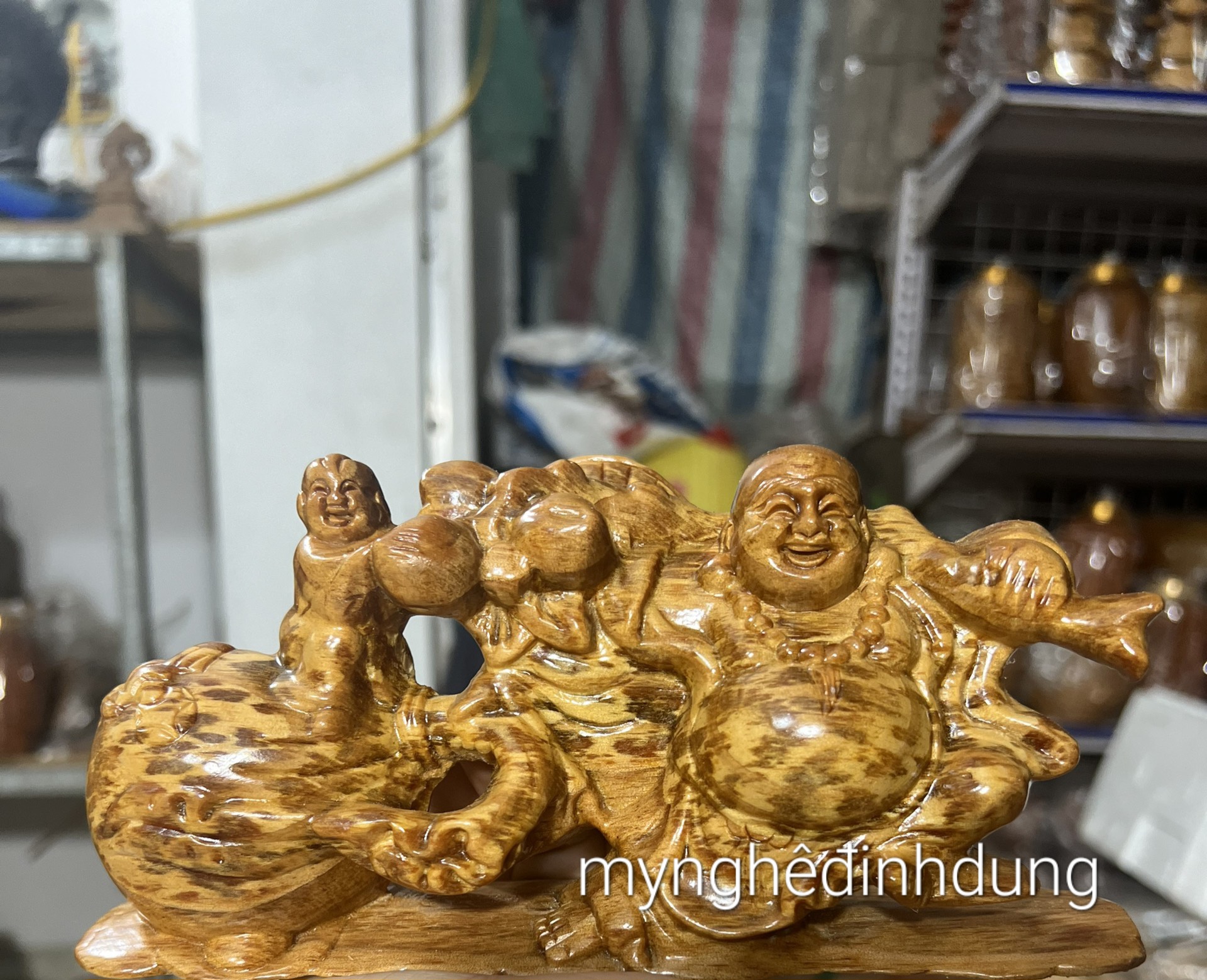 Tượng phật di lặc kéo bao gỗ bách xanh dài 20cm