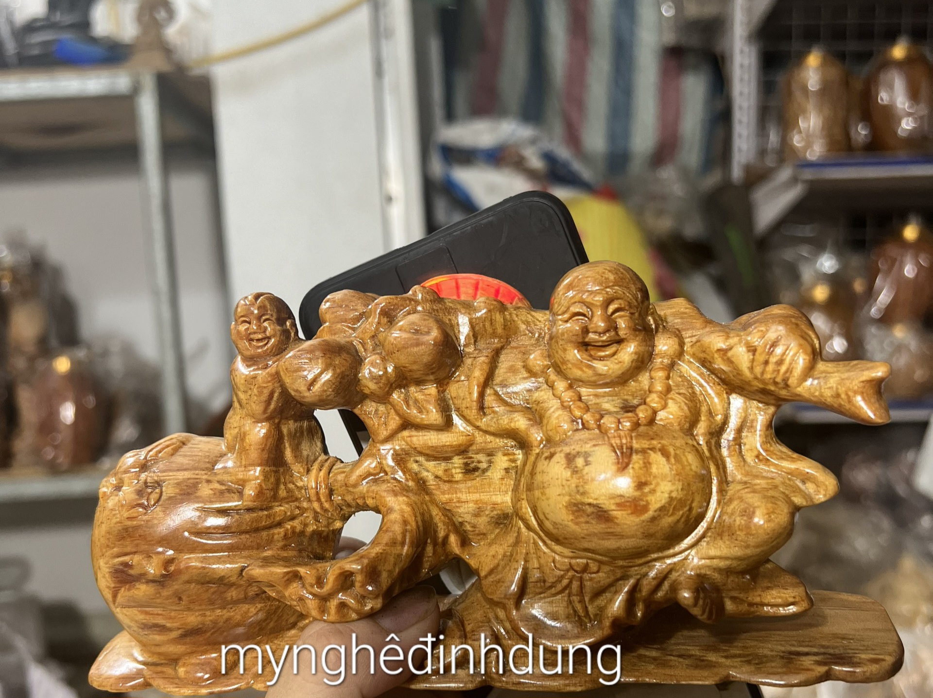 Tượng gỗ Phật Di Lặc kéo bao tiền bằng gỗ bách xanh 🌳 Phật Di Lặc Đẹp [vankhanhan.com]