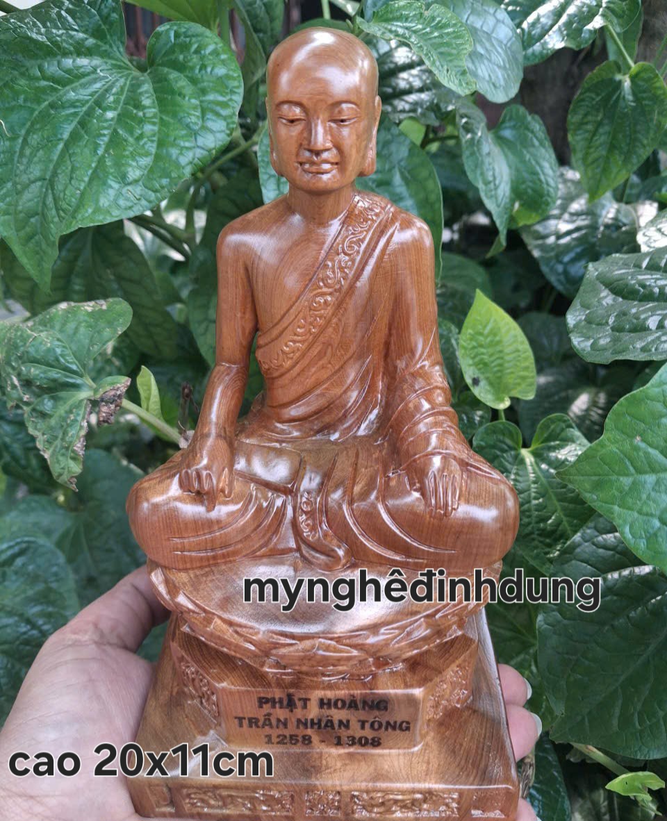 Mua tại TiktokTượng phật hoàng trần nhân tông được làm bằng chất lượng gỗ bách xanh liền khối tự nhiên 100% Kt cao 20x11cm _ Tượng được chạm khắc vô cùng tỉ mỉ tinh xảo kỳ công. ĐI HẦU hết tất cả mọi chi tiết góc ngách nội dung hoa văn của tượng đều được gọt tỉa chỉnh sửa sắc nét hoàn toàn bằng tay thủ công truyền thống.