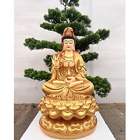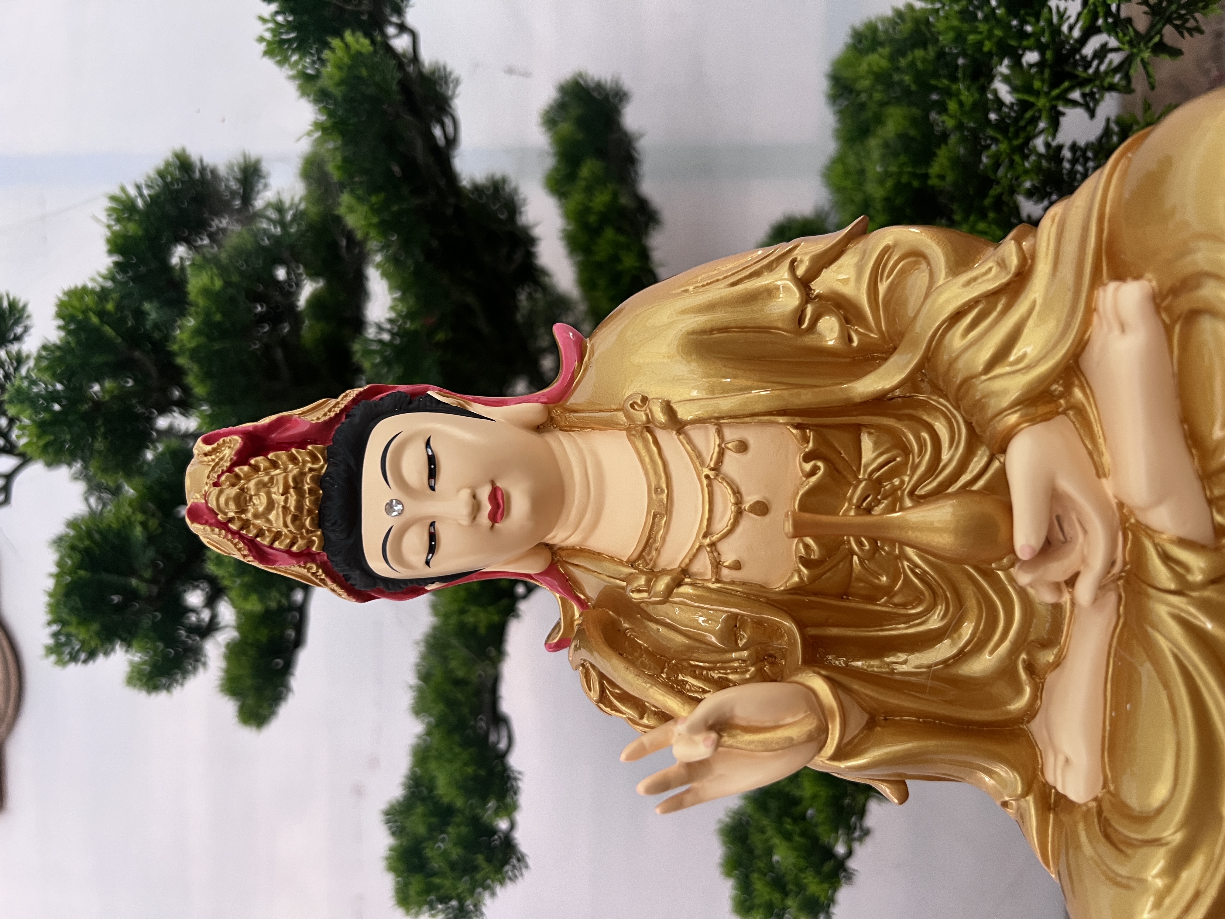 Mua tại TiktokTượng Phật quan thế âm cao 30cm tính cả đế Chất liệu composite. Cân Nặng: 2kg Màu nhũ như hình chụp Shop chụp bằng camera thường. KT 17 x 17 x 30 Nhắc đến Phật giáo, chúng ta nghĩ đến từ bi cứu khổ. Hình ảnh cứu khổ tiêu biểu tuyệt vời nhất không ai khác hơn là đức Bồ-tát Quán Thế Âm luôn hiện hữu trong tâm thức của những người con Phật. Vị Bồ-tát này có đầy đủ phẩm chất của một người mẹ trong tất cả những người mẹ. Hình như trong mọi trái tim của những người con Phật thuần thành - nhất là giới Phật tử bình dân - không ai là không có hình ảnh đáng tôn kính của vị Bồ tát giàu lòng bi mẫn này.