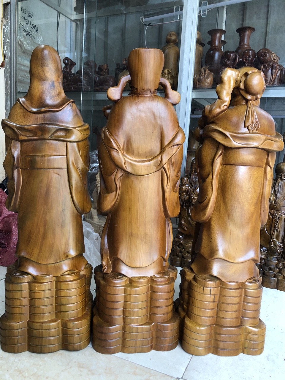 Tượng tam đa phúc lộc thọ gỗ bách xanh mộc châu cao 50| 0389.8899.68