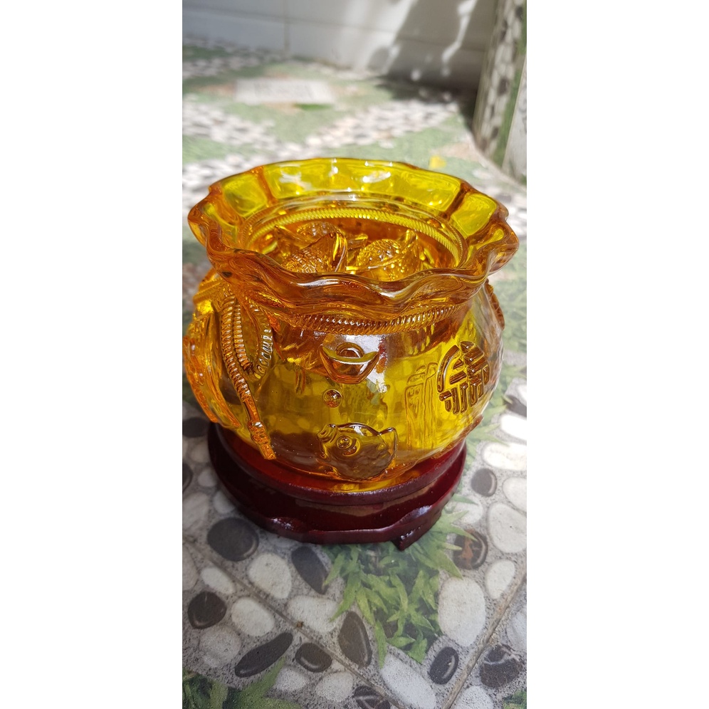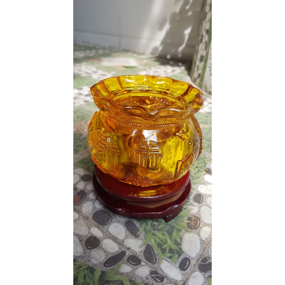 Tượng Phong Thủy Thố tụ tài to mới miệng kiểu màu vàng anh tài lộc 20 thỏi xiền vàng đá lưu ly tự nhiên đế gỗ size lớn đk 13cm x Cao 13cm cả đế x thố cao 9cm Hợp Anh Chị Mệnh Kim Thổ Thuỷ đặt bàn làm ...