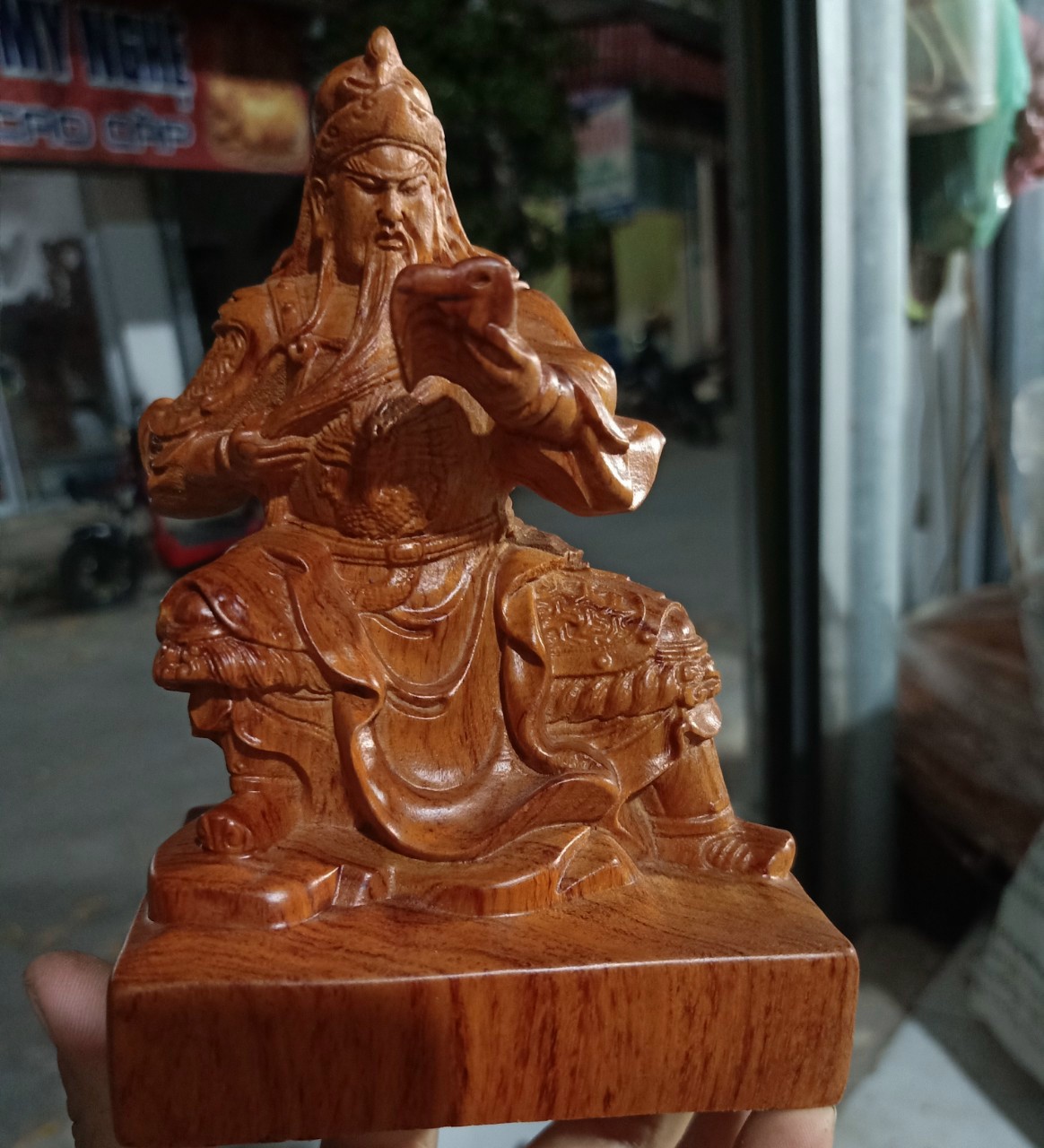 _ Tượng quan công đọc sách được làm bằng chất liệu gỗ hương đá tự nhiên 100% _ Kích thước cao 15×8×10cm _ Tượng quan công đọc sách được làm và hoàn thiện do bàn