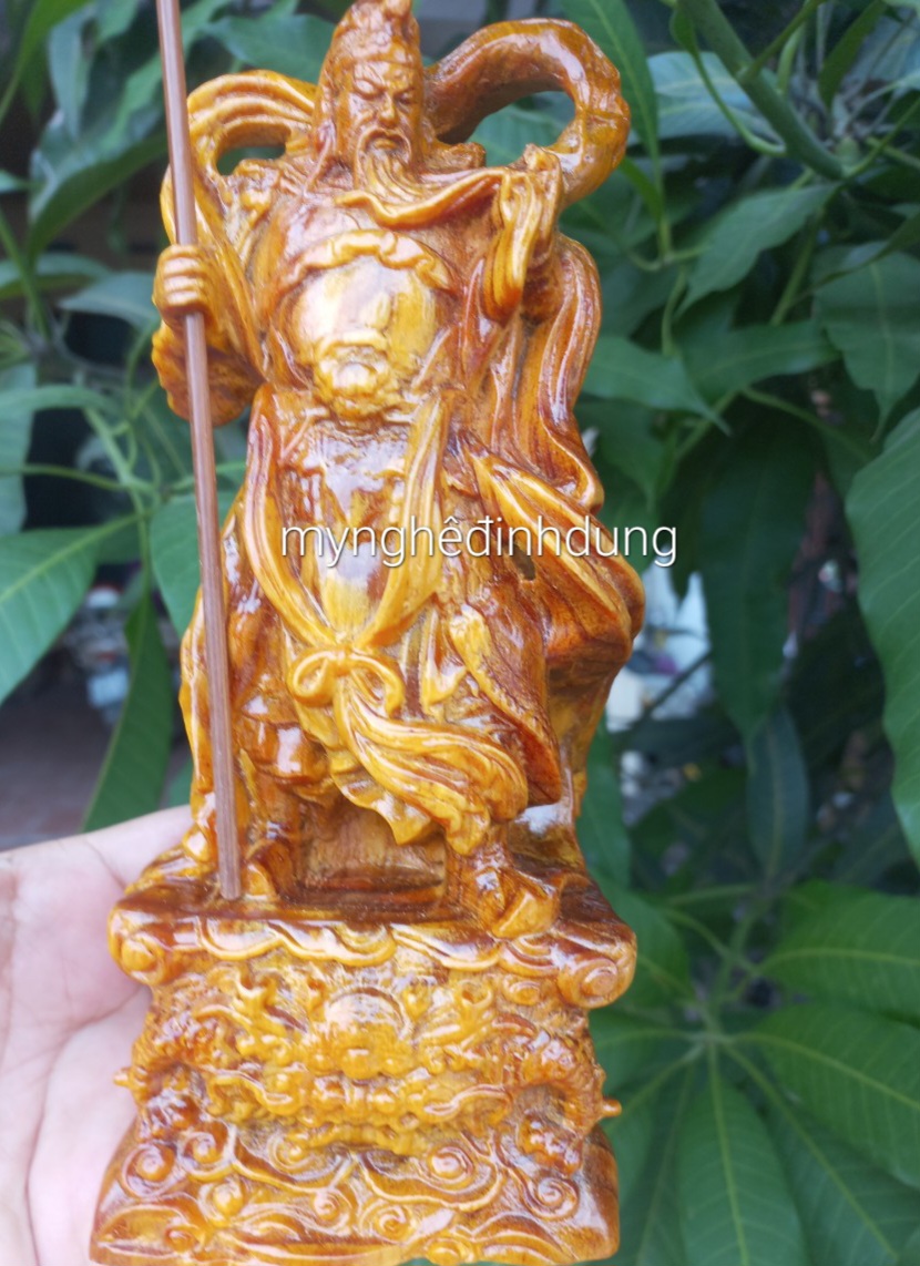 Tượng Quan Công Đứng Múa Gỗ Mỹ Nghệ Size Vừa Cao 40cm đk 24cm Sâu 17cm tư thế sẵn sàng chiến thắng Anh Chị trưng trên bàn phòng khách nhà , công ty ạ
