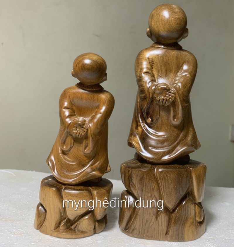 Cặp tượng đạt ma sư tổ và tượng tố công được làm bằng chất liệu gỗ hương đá tự nhiên 100% _ Kích thước 40×12×11cm _ Cặp tượng tố công và đạt ma được làm