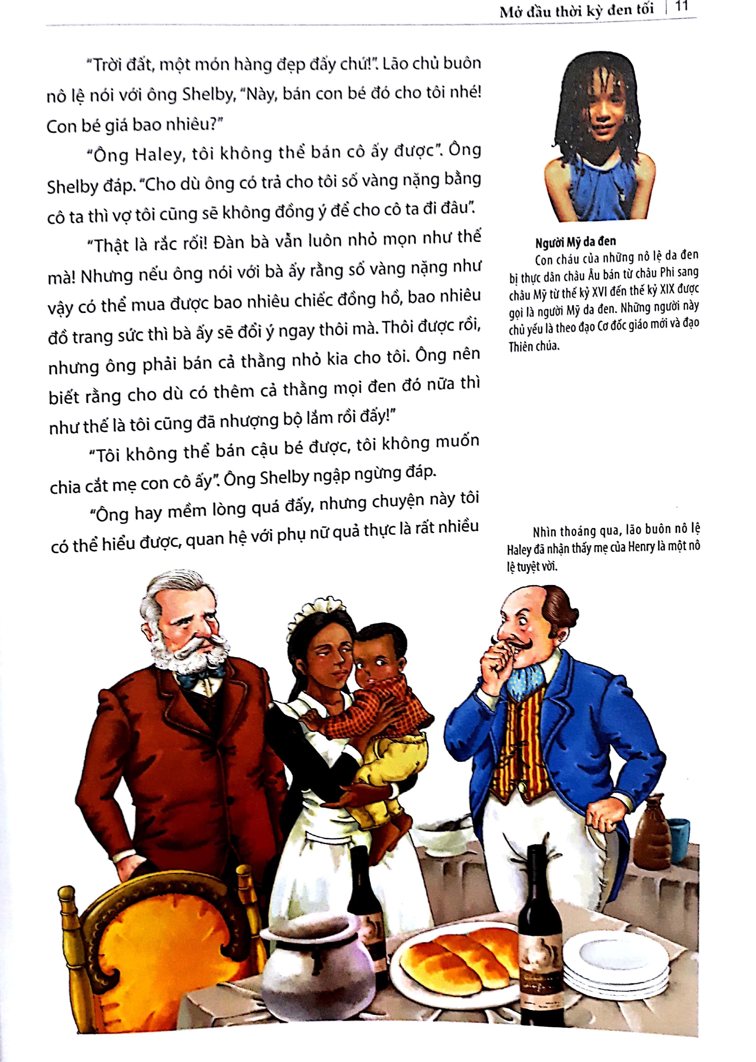 Bác Tôm là một nô lệ da đen trung thực, ngay thẳng và trọng danh dự nhưng cuộc đời lại chịu nhiều đau đớn và tủi nhục. Phải lìa bỏ vợ con, bị đánh đập tàn nhẫn và bị bán từ nơi này qua nơi khác, bác đã trải qua những tháng ngày thống khổ trong các đồn điền trồng bông khủng khiếp ở miền Nam nước Mỹ.