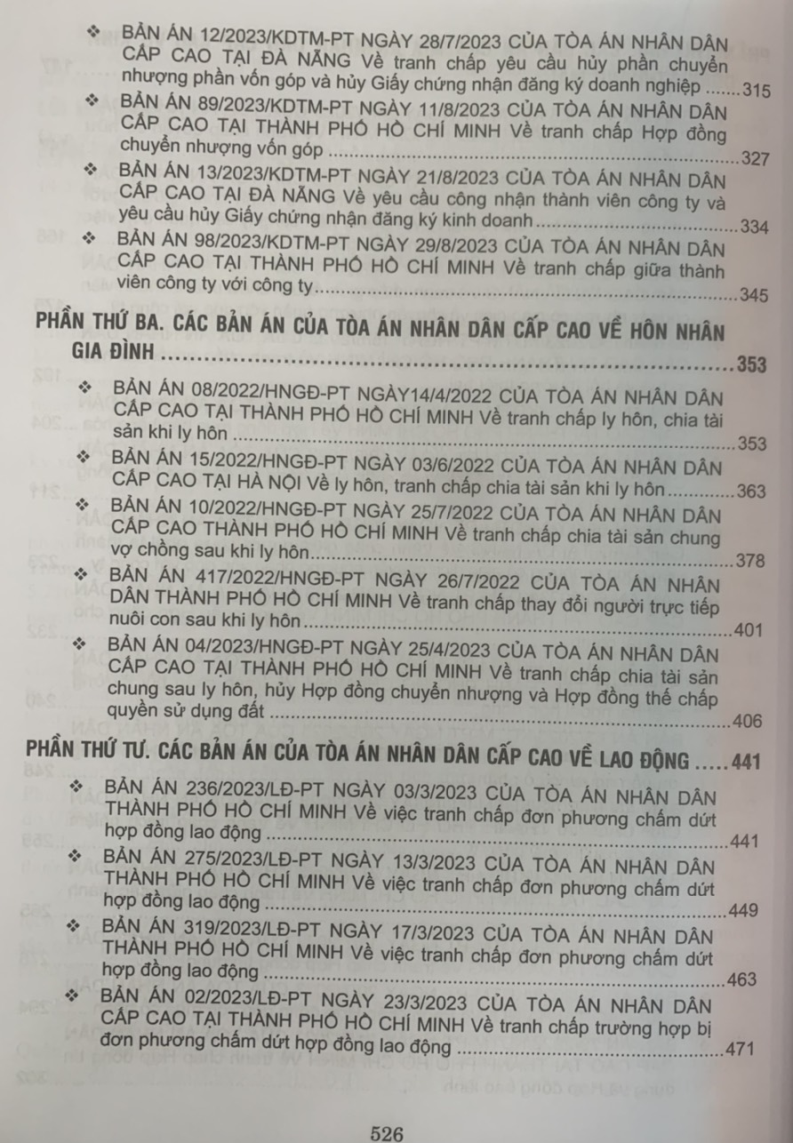 TUYỂN TẬP CÁC BẢN ÁN CỦA TÒA ÁN NHÂN DÂN CẤP CAO VỀ HÀNH CHÍNH – KINH DOANH THƯƠNG MẠI – HÔN NHÂN GIA ĐÌNH – LAO ĐỘNG