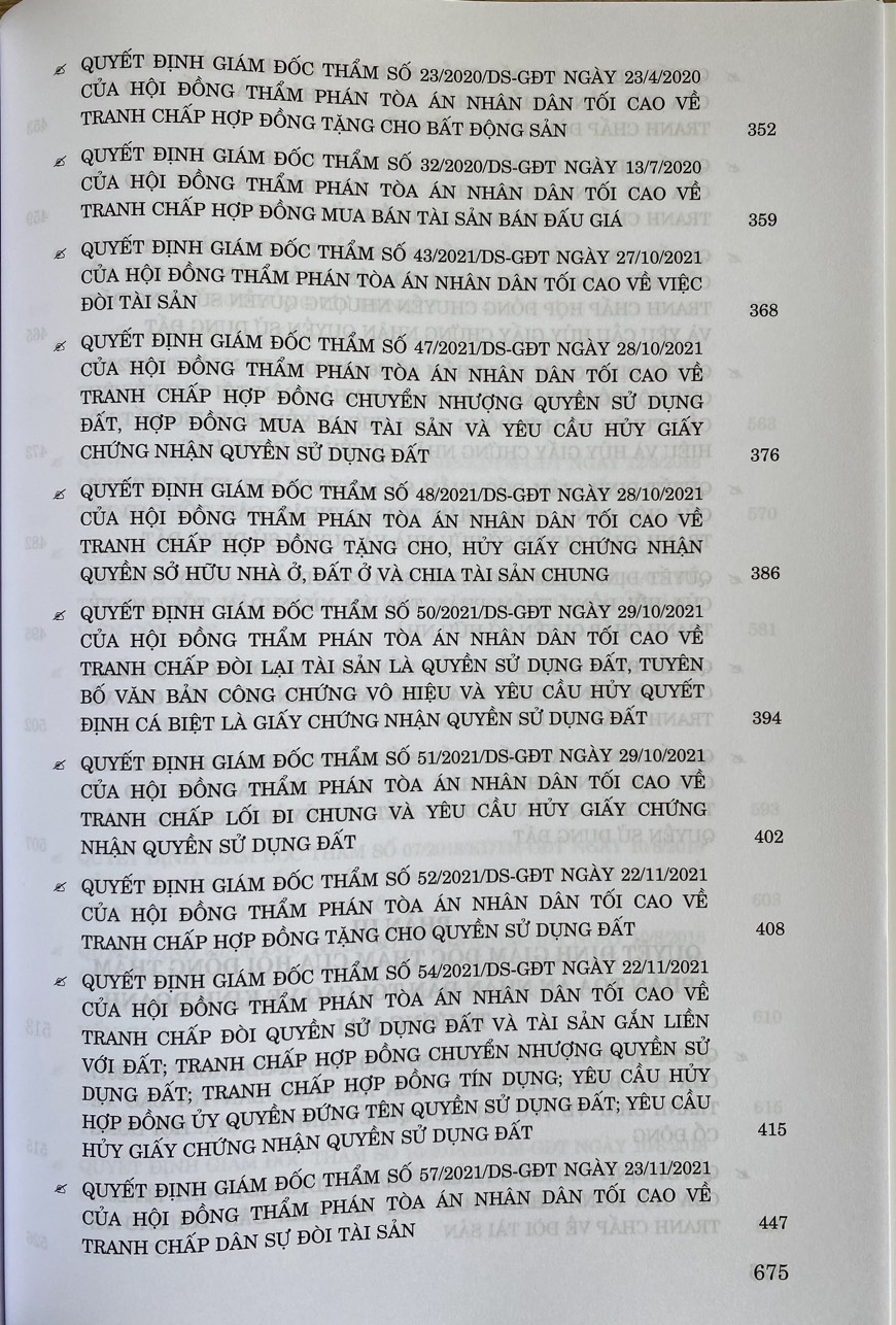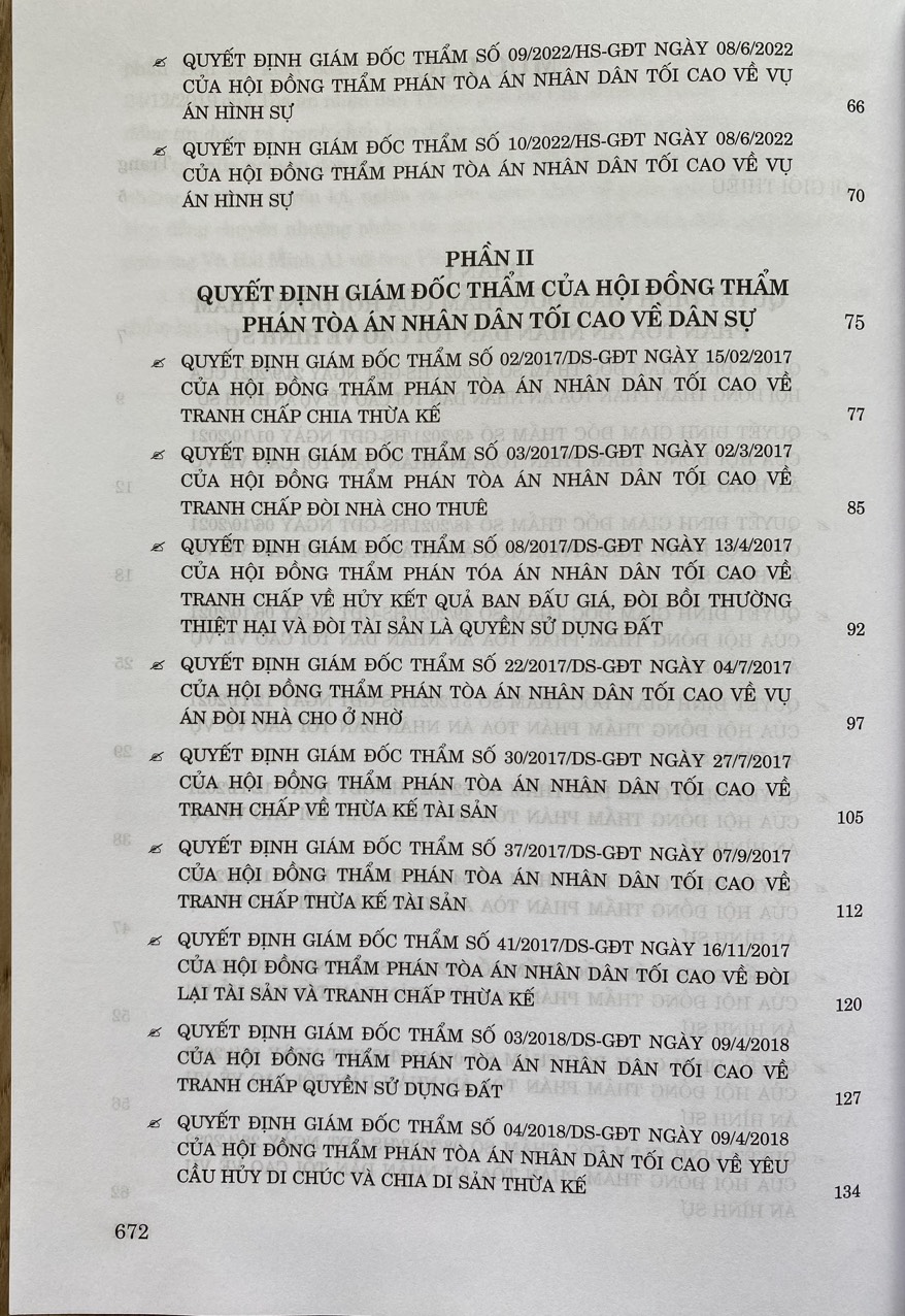 Phần II: Các quyết định giám đốc của Hội đồng Thẩm phán Tòa án nhân dân Tối cao về dân sự