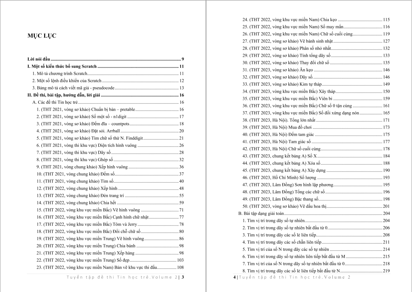 Phần chính thứ hai, cũng là nội dung chính cuốn sách, bao gồm các đề thi và bài tập Scratch. Nội dung này sẽ bao gồm 3 phần: