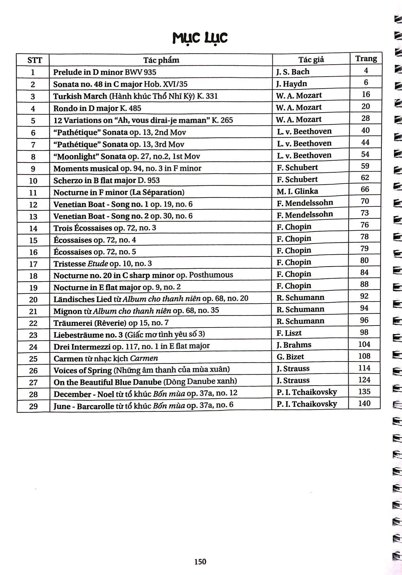 Tuyển Tập Tác Phẩm Piano Cổ Điển Được Yêu Thích Phần 2 Bộ sách giới thiệu các tác phẩm piano được nhiều người yêu thích của những nhạc sĩ thiên tài thuộc