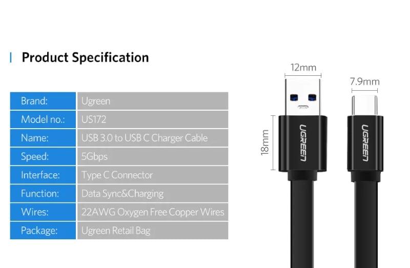Mua tại TiktokUgreen 10697 Usb 3.0 To Usb C Flat Cable Black 1M Us172