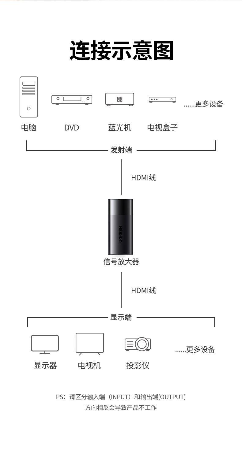 Ugreen 40201 Ugreen 1X2 Hdmi Amplifier Splitter Đen 40201 1. Feature: connecting and playing images from 1 device to 2 screens at the same time 2. HDCP compliant; 3. Video color depth up to 12bit,