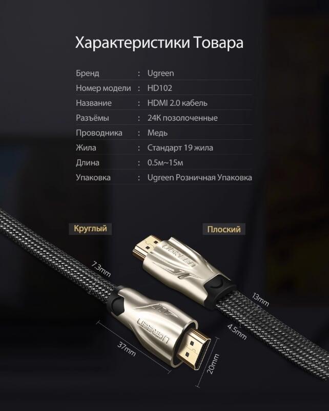 - Standard HDMI Ugreen 1.4 cable, data transfer rate of 10.2 Gb / s