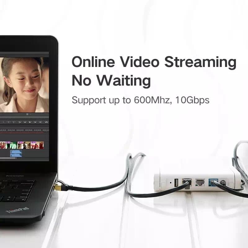 • Dây mạng dạng dẹt Cat7 Ugreen 11271 là sợi cáp mạng RJ45 cao cấp giúp kết nối thiết bị của bạn với mạng internet có dây với tốc độ kết nối lên đên 10Gbps, đảm bảo hiệu xuất làm việc, lướt web, chơi game…etc. Đối với các máy chủ yêu cầu lưu lượng băng thông cực lớn, Cáp mạng Ugreen 11271 là giải pháp hoàn hảo nhất.