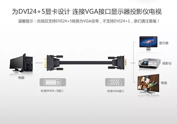 Ugreen 11618 Cáp chuyển đổi DVI 24+5dương sang VGA dương dài 3m DVI24+5 male to VGA male cable DV102 1. Length : 3M 2. Color : Black 3. Cable DVI24+5 male to VGA male 4.